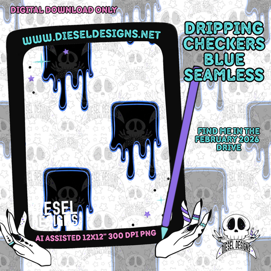 Dripping Checkers Blue Seamless | Seamless File | 300 DPI | 12" x 12" | Digital File only