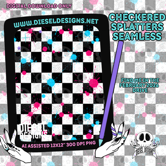 Checkered Splatters Seamless | Seamless File | 300 DPI | 12" x 12" | Digital File only