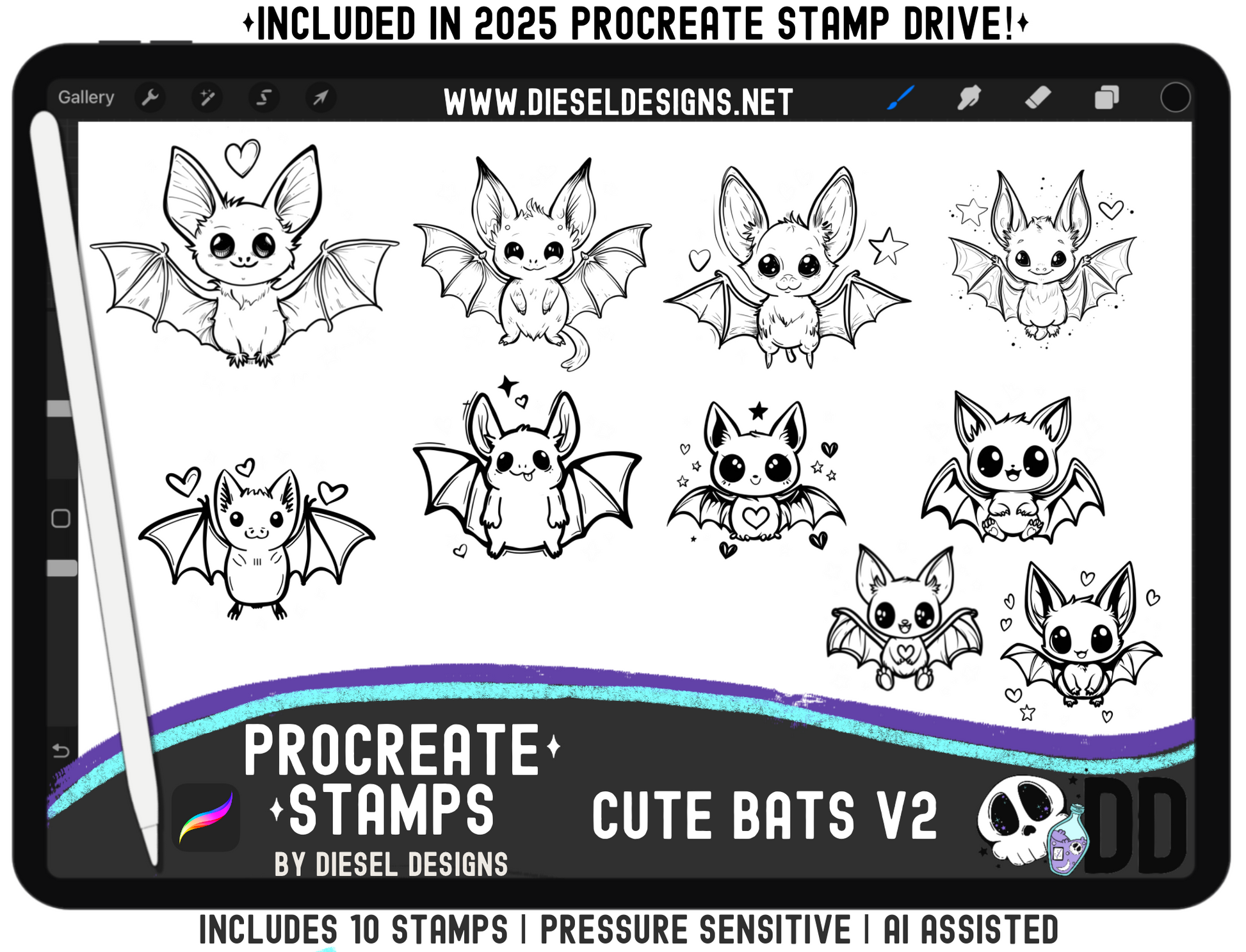Cute Bats V2| PROCREATE BRUSHES/STAMPS | Digital File Only