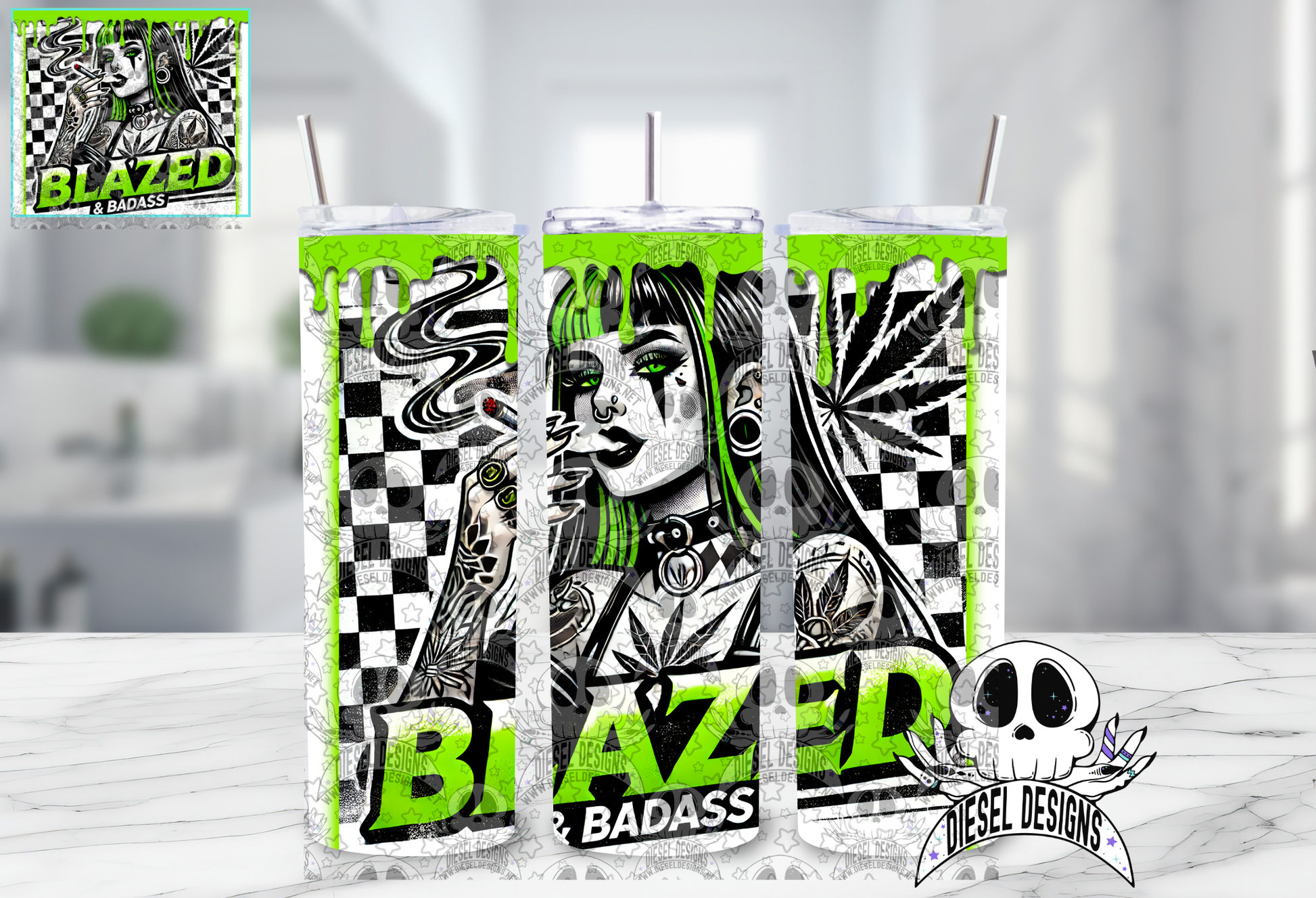 Blazed Bad Ass Tumbler Wrap White | 20oz. Tumbler Wrap | 300 DPI | Digital File Only