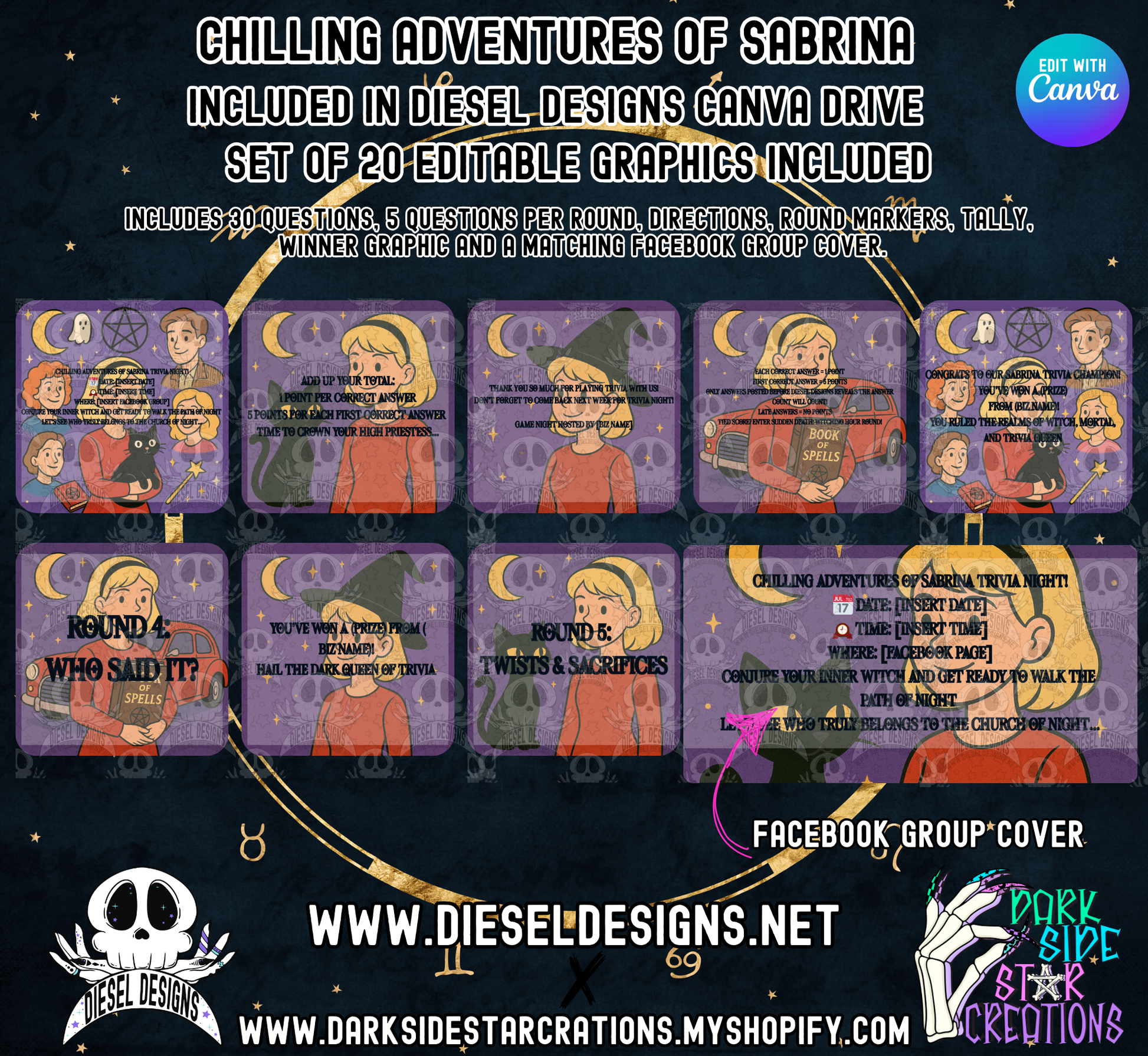 Chilling Adventures Of Sabrina Trivia Game | Canva Template | Fully Editable | Facebook | Engagement