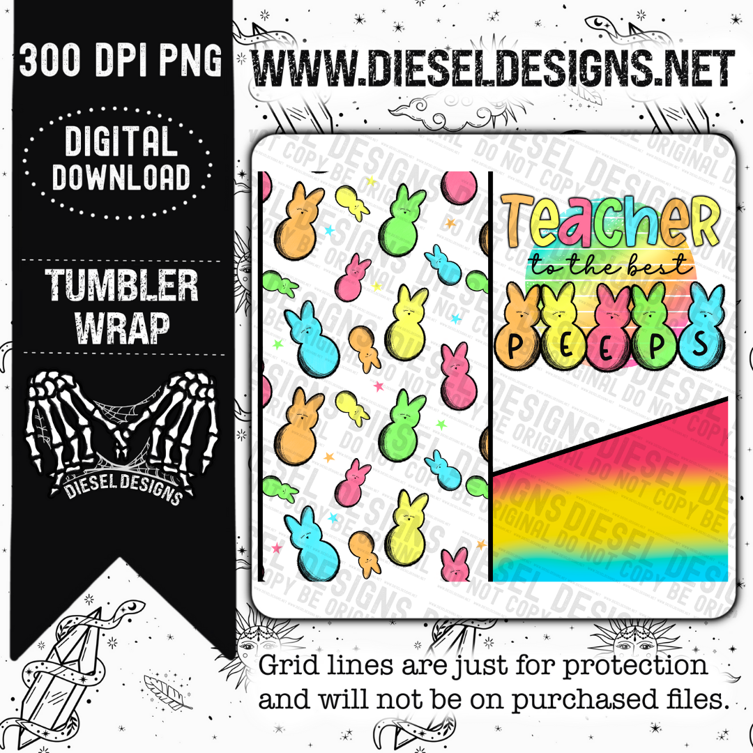 Tumbler teacher peeps white | 300 DPI | 20 oz Skinny Tumbler Wrap
