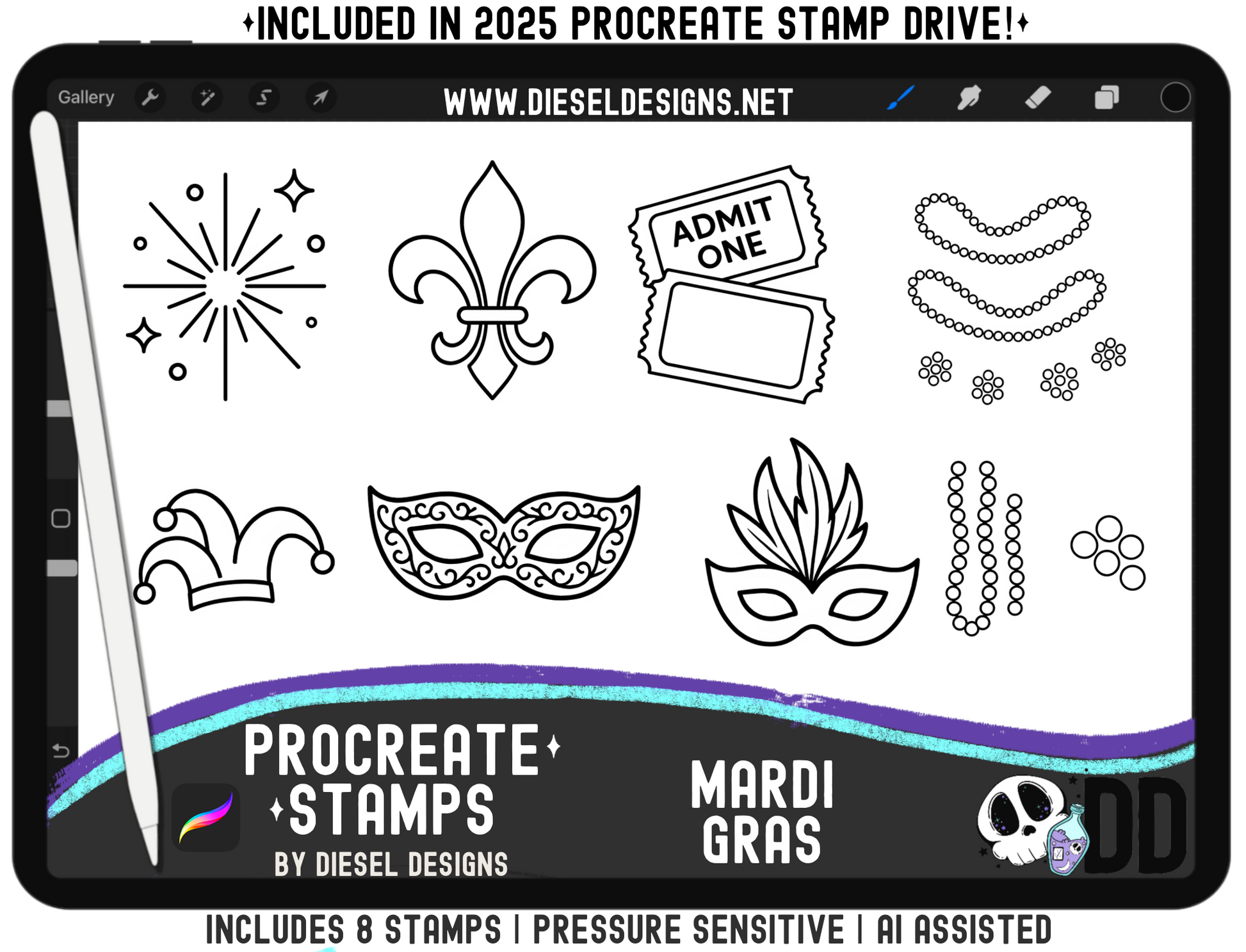 Mardi Gras Stamp Set | PROCREATE BRUSHES/STAMPS | Digital File Only