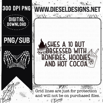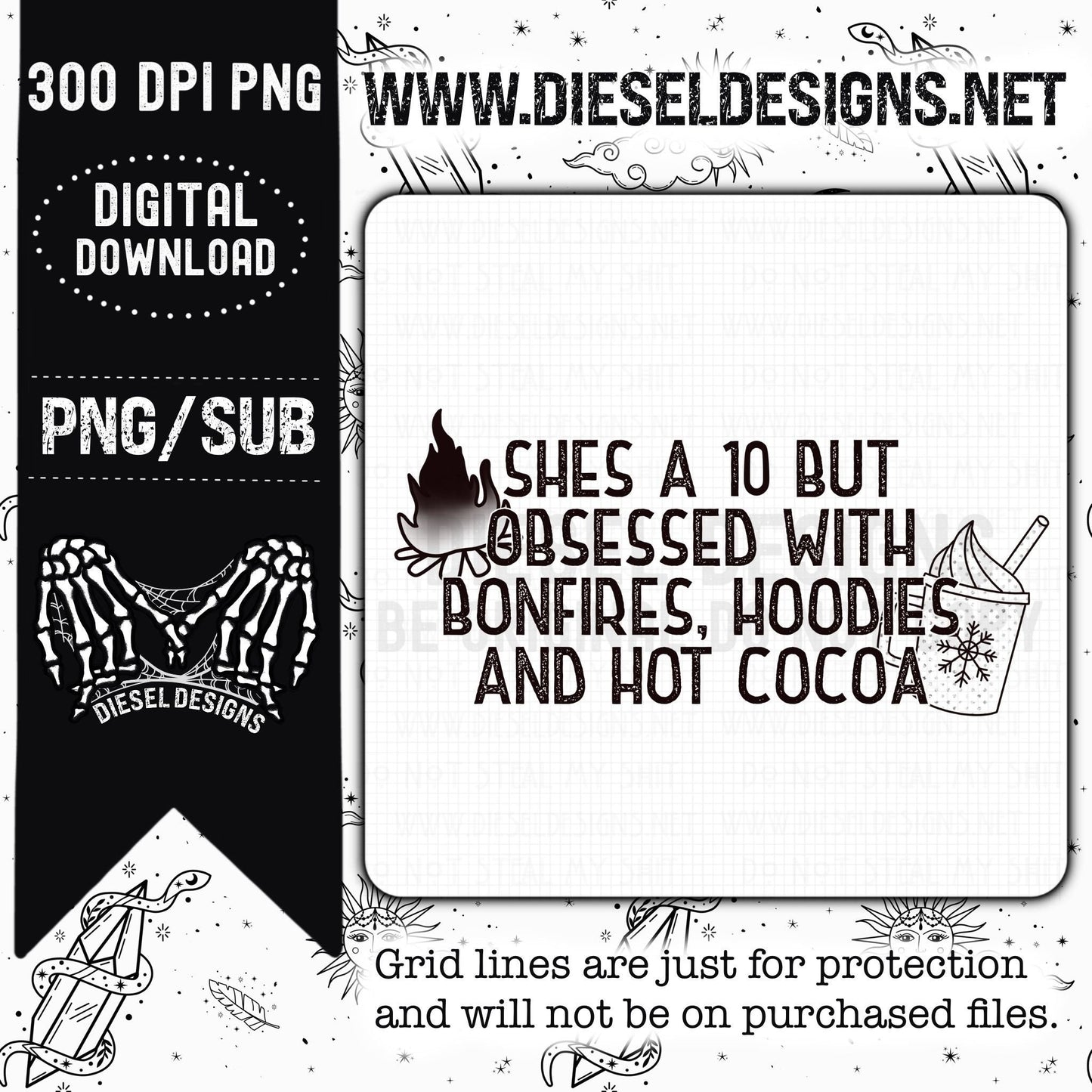 Obsessed With Bonfires, Hoodies & Hot Cocoa | 300 DPI | Transparent PNG |