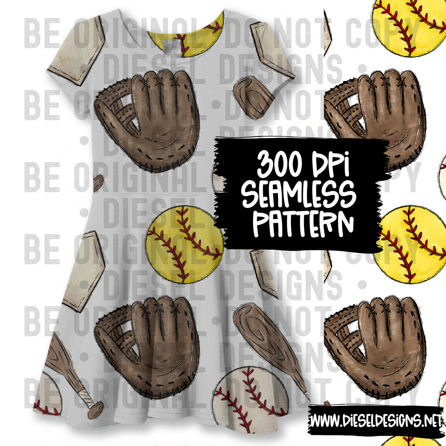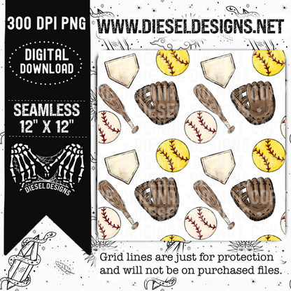 Seamless Softball Baseball | 300 DPI | 12" x 12" | Seamless File