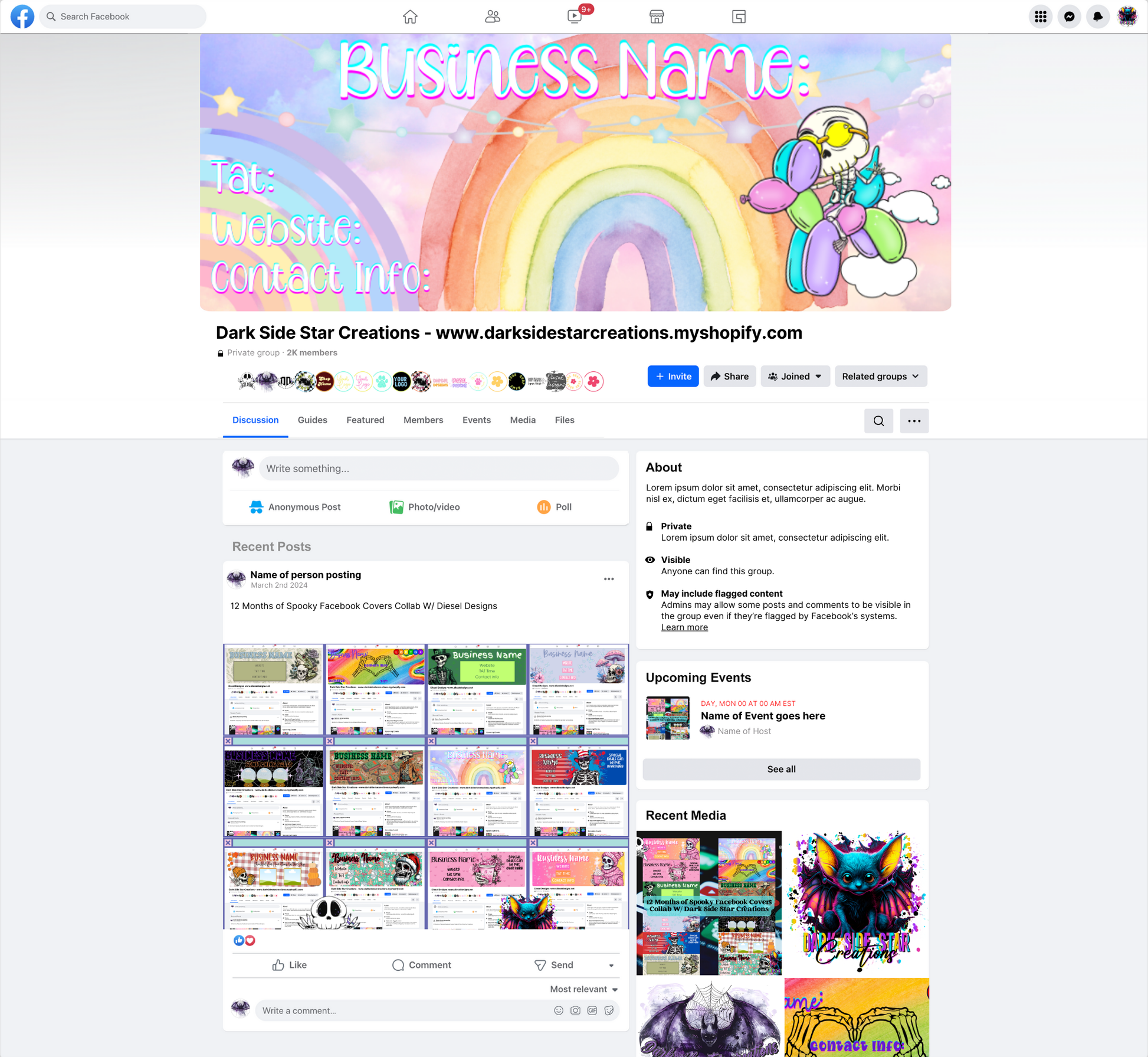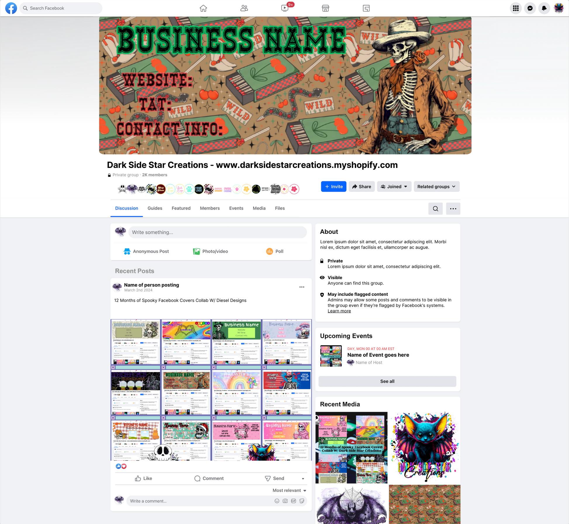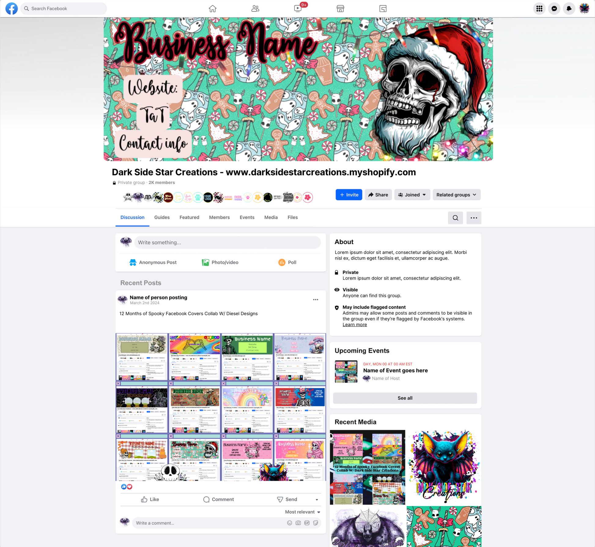 Spooky Facebook Group Cover Collab W/Dark Side Star Creations | Facebook Covers | Editable graphics included | Template | Canva | Collab