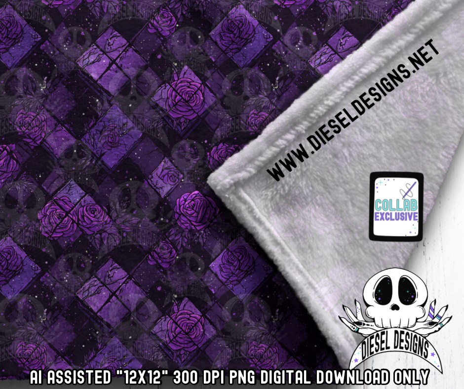 Stained Glass Roses Seamless | Seamless File | 300 DPI | 12" x 12" | Digital File only
