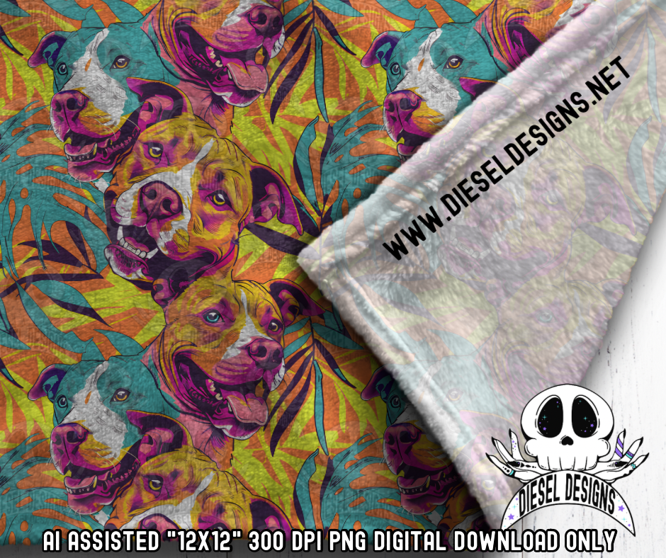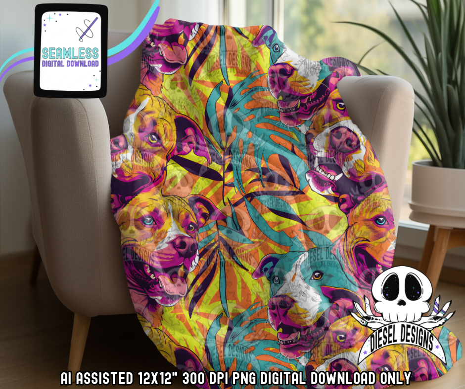 Tropical Pitbull Seamless | Seamless File | 300 DPI | 12" x 12" | Digital File only