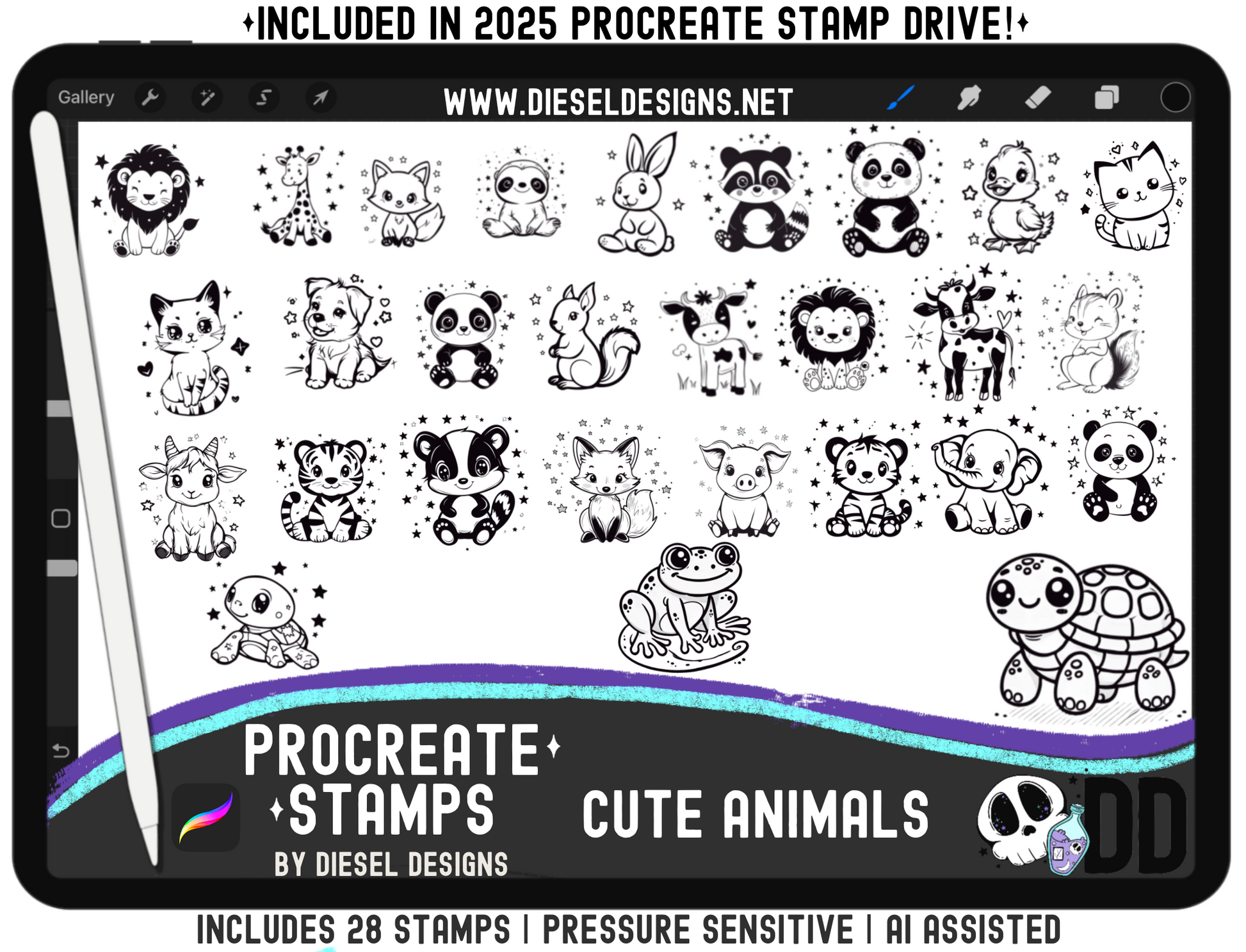 Cute Animals Procreate Stamp Set | PROCREATE BRUSHES/STAMPS | Digital File Only