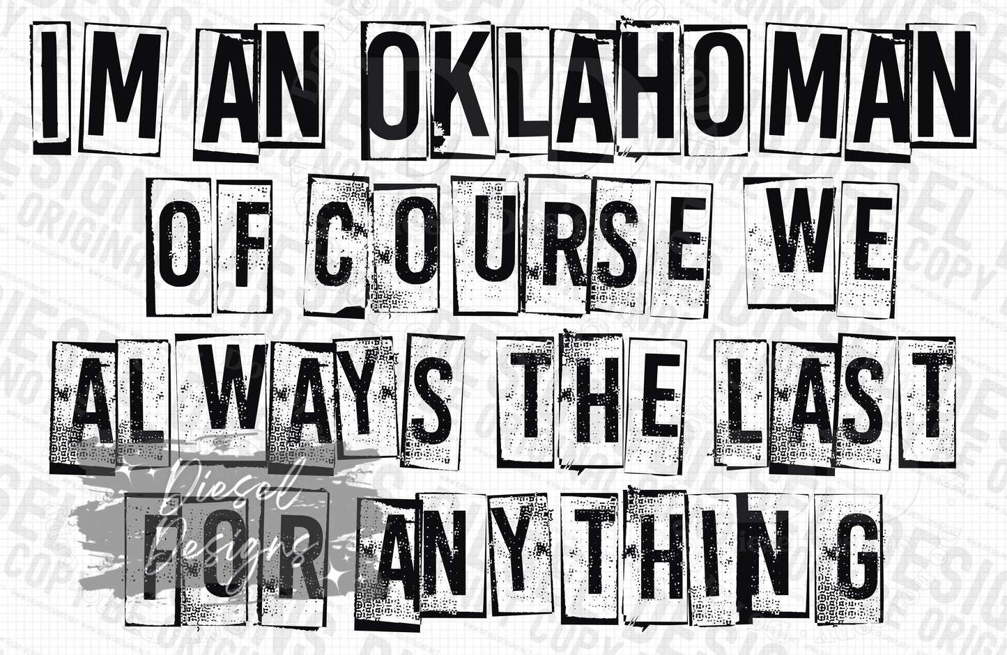I'm an Oklahoman of course we always the last for anything | 300 DPI | Transparent PNG | Digital File Only