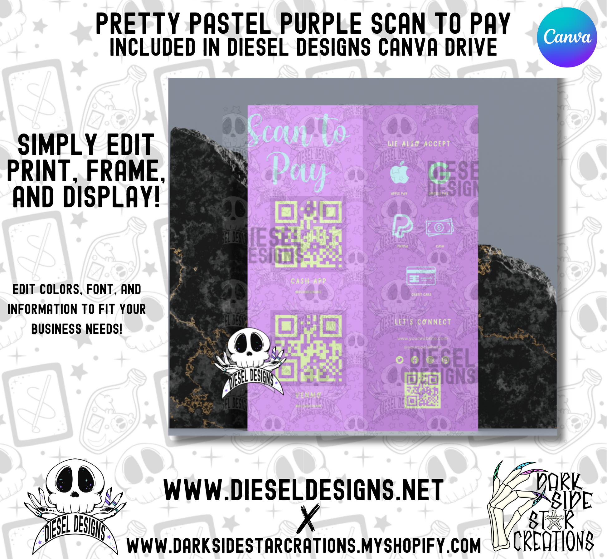 Pretty Pastel Purple Scan To Pay | Printable Files | Canva Editable graphics included | Scan to Pay | Let's Connect