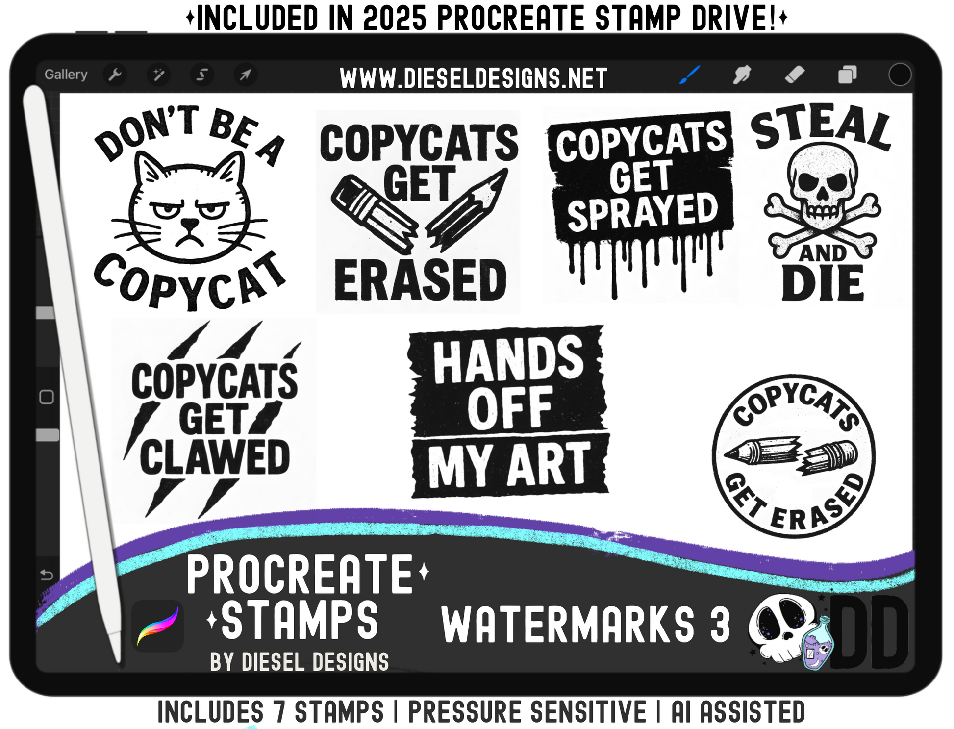 Watermark Procreate Stamp Set 3 | PROCREATE BRUSHES/STAMPS | Digital File Only